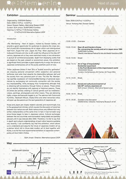 Re:Membering - Next of Japan≫展覧会概要 ≫参加アーティスト ≫カタログエッセイ ≫展示風景 ≫おまけリンク |