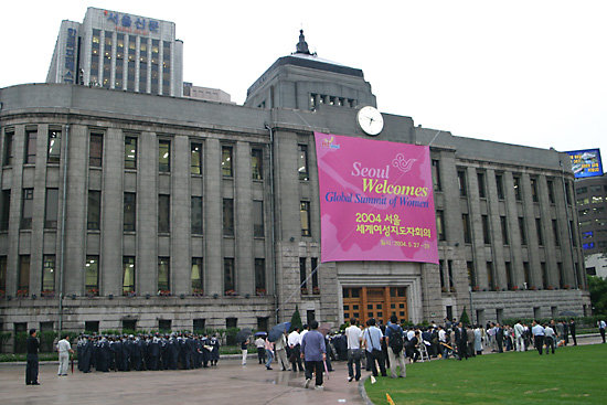 徳寿宮を出てると市庁前におびただしい数の、警察予備兵とマスコミの姿が。一体何をしているのかわからなかったけれど、彼らの入隊式?みたいなものかと...。