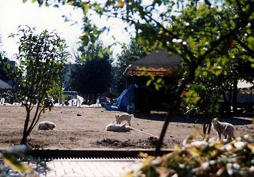 みんなで日向ぼっこらしい。せっかく真っ白の毛なのに、どんどん汚れていってるけど....