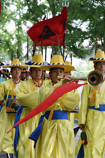 向かいの徳寿宮の前でも交代式をやっていたので一応撮影。その間、友人が屋台で何故かするめを購入。