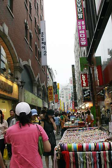 そこで携帯電話をいじっていたら、誤ってキーロックにしてしまう。戻そうと思うとパスワードを入力してね、の画面が出てしまうので困ってしまい、向かいにあった携帯電話屋のお兄さんに聞いてみたら、パスワードがないとダメです、と...。こうなったら観光案内所のお姉さんになんとかしてもらおう!と思いつき向かうことに。結局空港のLGテレコム・レンタルカウンターに電話で問い合わせてくれ無事パスワードゲット。何でもしてくれるのねぇ、と感心しながら明洞の人混みから離れたくなり、今度は一路、大学路へ。